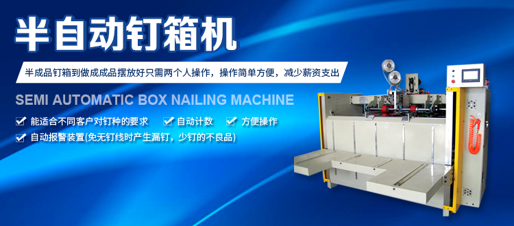 半自動釘箱機(jī)設(shè)備特點釘箱機(jī)在現(xiàn)在的機(jī)械行業(yè)內(nèi)使用比較的廣泛,因為現(xiàn)在紙箱包裝機(jī)械的發(fā)展迅速,企業(yè)關(guān)于釘箱機(jī)的要求也越來越高,而組織制造業(yè)想要使設(shè)備更具競爭力,需要關(guān)于半自動釘箱機(jī)的...查看詳情+